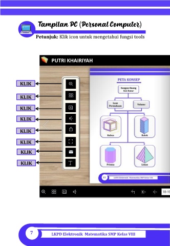 ( ) Petunjuk: Klik icon untuk mengetahui fungsi tools PUTRI KHAIRIYAH KLIK KLIK KLIK KLIK KLIK KLIK KLIK KLIK 7 LKPD Elektronik Matematika SMP Kelas VIII