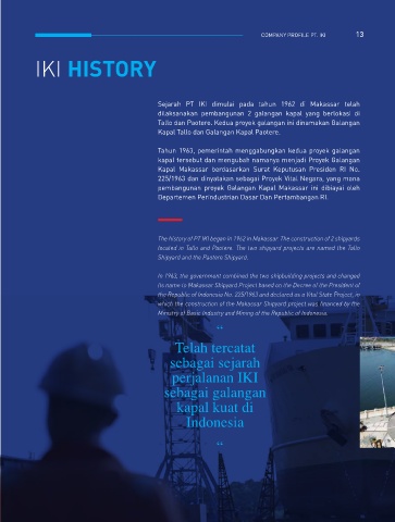 Sejarah PT IKI dimulai pada tahun 1962 di Makassar telah