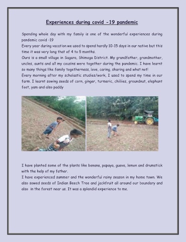 farm. I learnt sowing seeds of corn, ginger, turmeric, chillies, groundnut, elephant