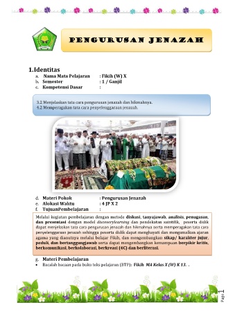 penyelenggaraan jenazah sehingga peserta didik dapat menghayati dan mengamalkan ajaran