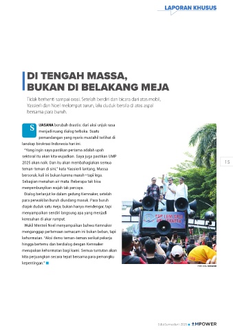 teman-teman di sini,” kata Yassierli lantang. Massa