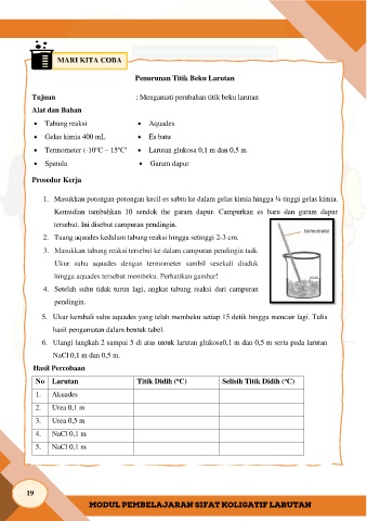 Tujuan                            : Mengamati perubahan titik beku larutan