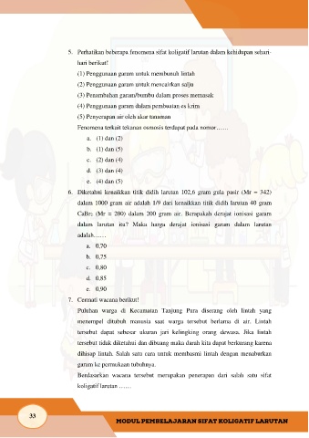 5.  Perhatikan beberapa fenomena sifat koligatif larutan dalam kehidupan sehari-