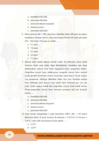 8. Massa glukosa (Mr = 180) yang harus dilarutkan dalam 500 gram air supaya