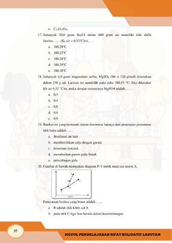 17. Sebanyak 20,8 gram Ba2Cl dalam 600 gram air memiliki titik didih
