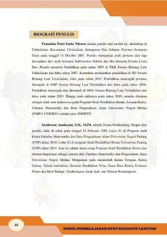 Fransiska Putri Sonia Ndruru adalah penulis dari modul ini, dilahirkan di