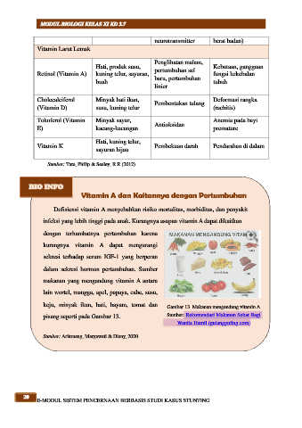Retinol (Vitamin A)     kuning telur, sayuran,   baru, pertumbuhan    fungsi kekebalan
