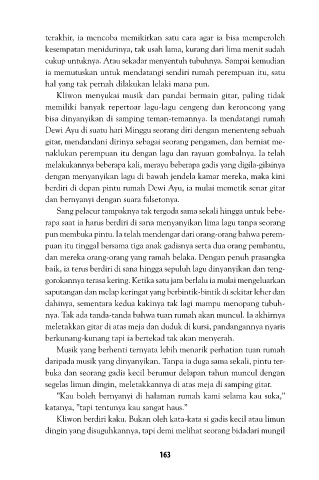 berdiri di depan pintu rumah Dewi Ayu, ia mulai memetik senar gitar