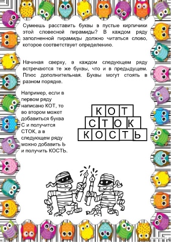 заполненной пирамиды должно читаться слово,