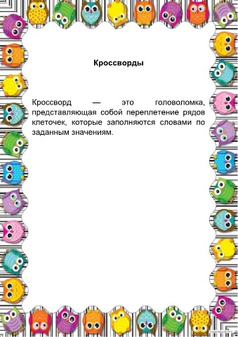 Кроссворды Кроссворд — это головоломка, представляющая собой переплетение рядов клеточек, которые заполняются словами по заданным значениям.