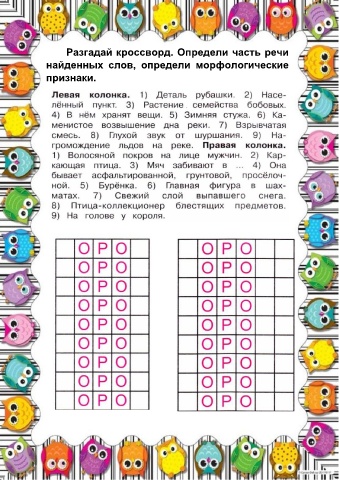 Разгадай кроссворд. Определи часть речи найденных слов, определи морфологические признаки.