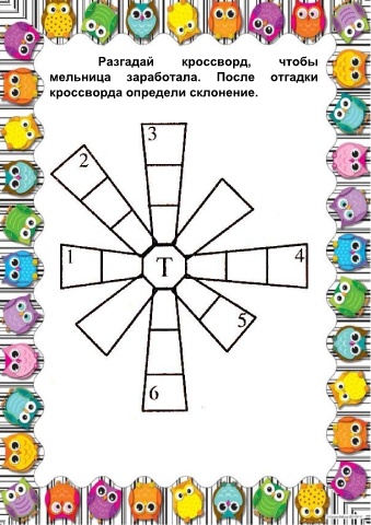 Разгадай кроссворд, чтобы мельница заработала. После отгадки кроссворда определи склонение.