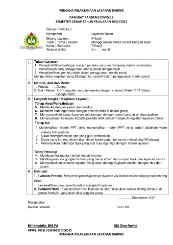 2. Evaluasi Hasil : Evaluasi dari hasil layanan ini akan dilakukan secara daring melalui link