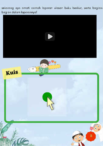 sekarang ayo amati contoh laporan ulasan buku berikut, serta bagian- bagian dalam laporannya! Kuis 2