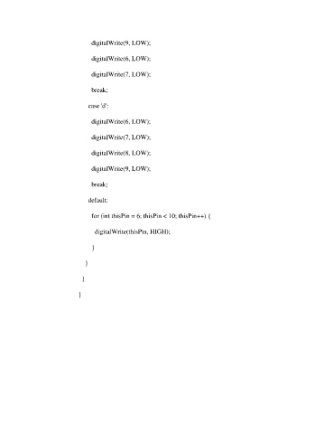 for (int thisPin = 6; thisPin < 10; thisPin++) {