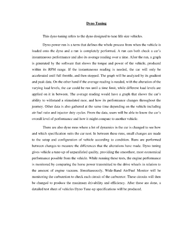 detailed test sheet of vehicles Dyno Tune-up specifications will be produced.