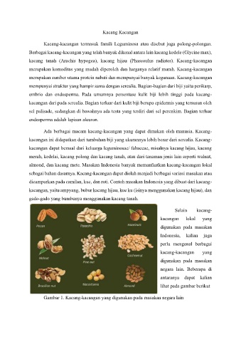 almond, dan kacang mete. Masakan Indonesia banyak memanfaatkan kacang-kacangan lokal