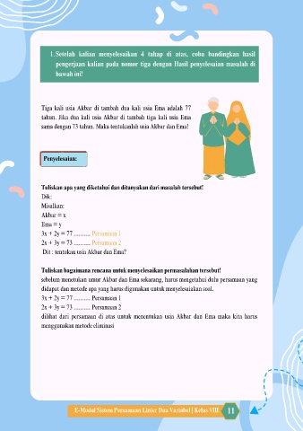 E-Modul Sistem Persamaan Linier Dua Variabel | Kelas VIII 11