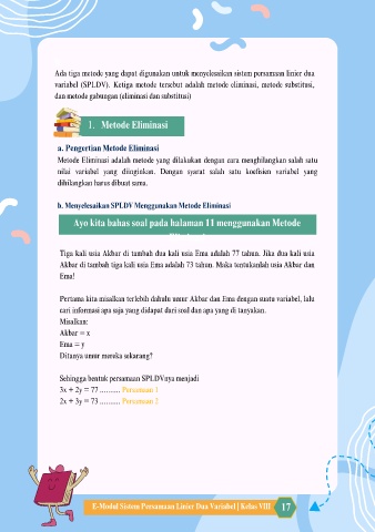 E-Modul Sistem Persamaan Linier Dua Variabel | Kelas VIII 17