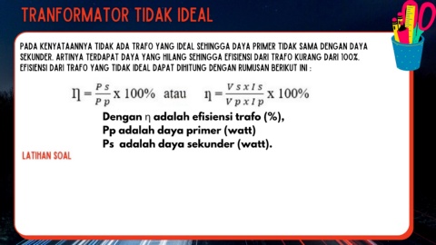Pada kenyataannya tidak ada trafo yang ideal sehingga daya primer tidak sama dengan daya