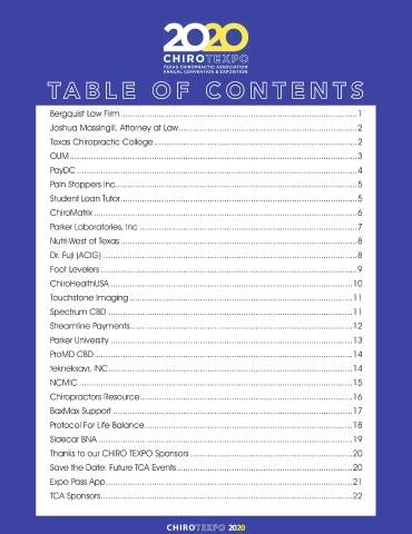 Thanks to our CHIRO TEXPO Sponsors ...................................................................20