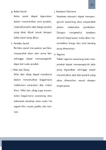 h. Perilaku Sosial nentukkan harga dan jenis barang