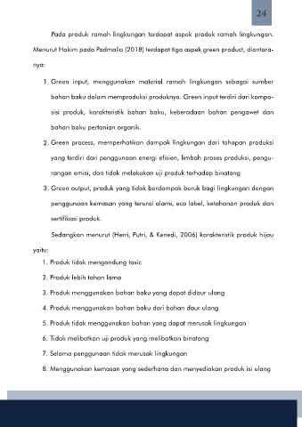 Sedangkan menurut (Herri, Putri, & Kenedi, 2006) karakteristik produk hijau