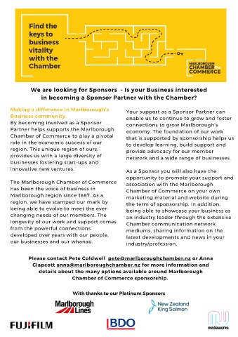By becoming involved as a Sponsor connections to grow Marlborough’s