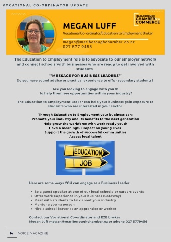 Megan Luff megan@marlboroughchamber.nz or phone 027 5779456