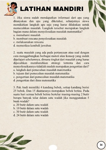 3. Pak Andi memiliki 4 kandang bebek, setiap kandang berisi