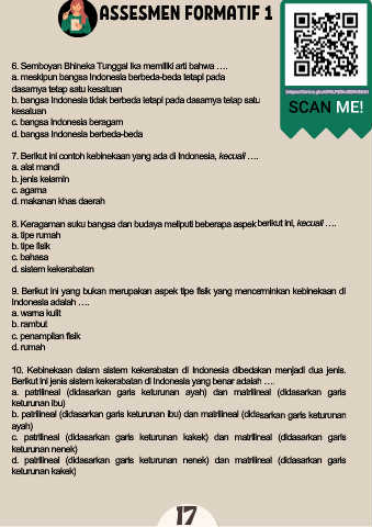 10. Kebinekaan dalam sistem kekerabatan di Indonesia dibedakan menjadi dua jenis.