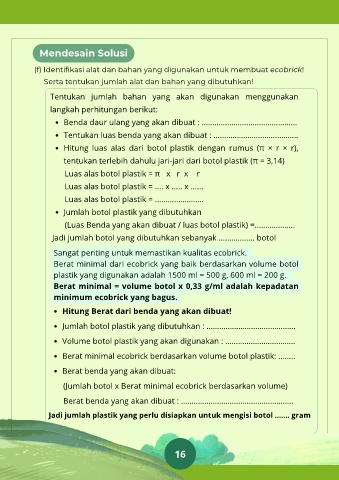 Jumlah botol plastik yang dibutuhkan : ..........................................