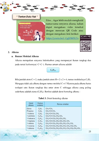 pada rantai karbonnya(‒C=C‒). Rumus umum alkena adalah