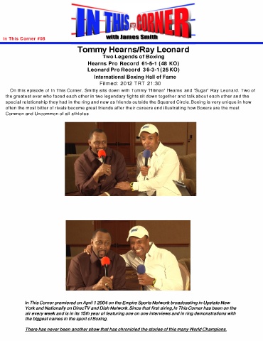 York and Nationally on DirecTV and Dish Network. Since that first airing, In This Corner has been on the
