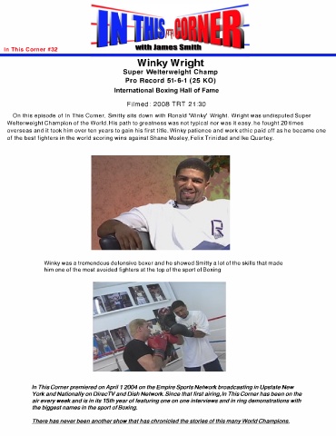 On this episode Co Smitty down w R 'Winky' Wright was undisputed Super