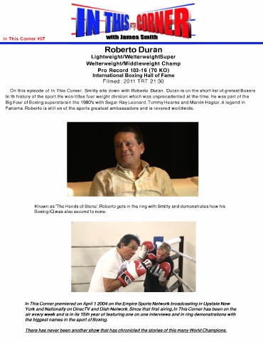 On this episode Co Smitty down w R D Duran is on the short list of gretest Boxers