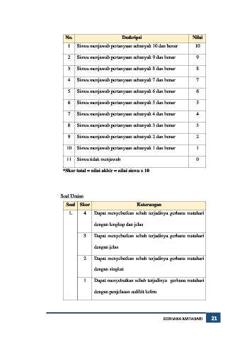 1 Siswa menjawab pertanyaan sebanyak 10 dan benar 10
