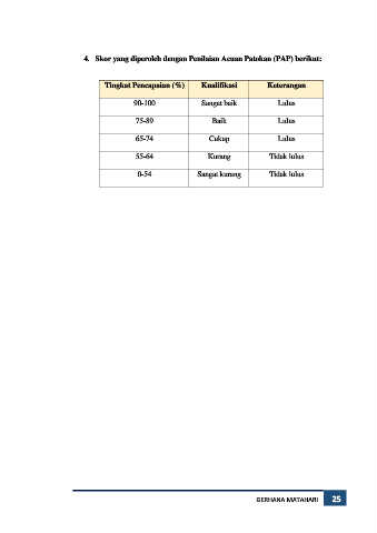 4.  Skor yang diperoleh dengan Penilaian Acuan Patokan (PAP) berikut: