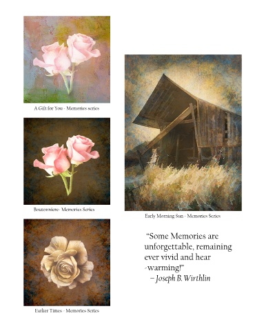 A Gift for You - Memories series Boutonniere- Memories Series Early Morning Sun - Memories Series “Some Memories are unforgettable, remaining ever vivid and hear -warming!” – Joseph B. Wirthlin Earlier Times - Memories Series