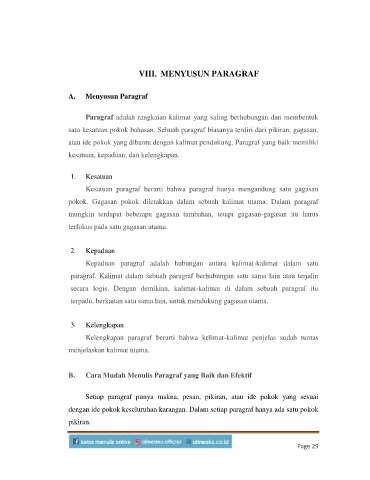 satu kesatuan pokok bahasan. Sebuah paragraf biasanya terdiri dari pikiran, gagasan,