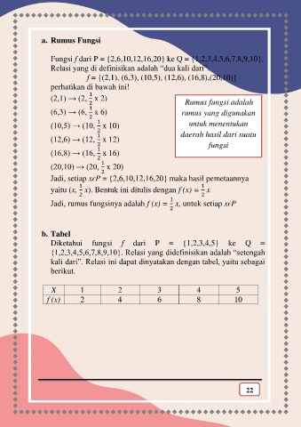 Jadi, setiap xϵP = {2,6,10,12,16,20} maka hasil pemetaannya