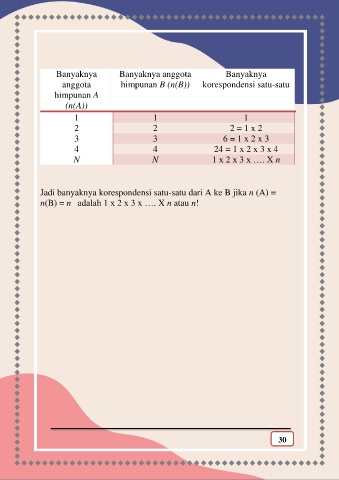 Jadi banyaknya korespondensi satu-satu dari A ke B jika n (A) =
