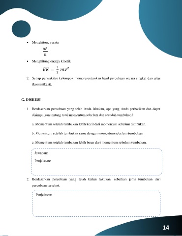 a. Momentum setelah tumbukan lebih kecil dari momentum sebelum tumbukan.