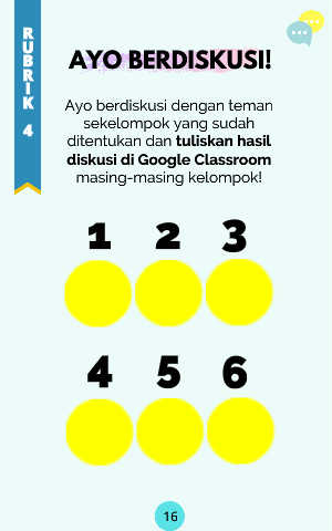 R U B AYO BERDISKUSI! R I K Ayo berdiskusi dengan teman 4 sekelompok yang sudah ditentukan dan tuliskan hasil diskusi di Google Classroom masing-masing kelompok! 1 2 3 4 5 6 16