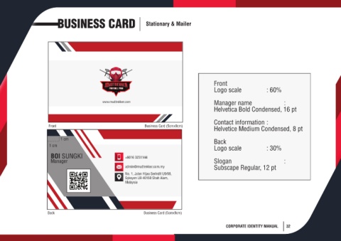 Front Business Card (5cmx9cm) Helvetice Medium Condensed, 8 pt