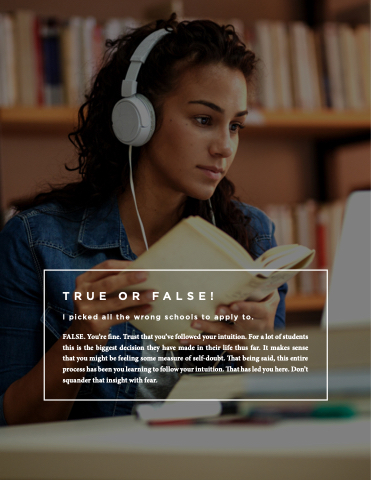 I picked all the wrong schools to to apply to to FALSE You’re fine Trust that you’ve followed your intuition For a a lot of students this is is is the the the biggest decision they have made in their life thus far It makes sense that you might be be feeling some measure of self-doubt That being said this entire process has has been you you you learning to follow your intuition That has has led you you you here Don’t squander that insight with fear 93