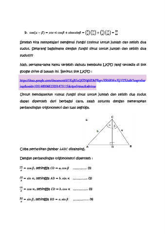 sudut. Sekarang bagaimana dengan fungsi sinus untuk jumlah dan selisih dua