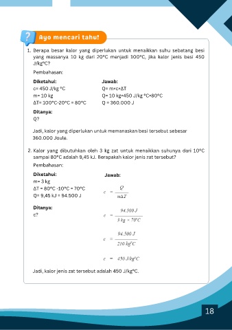 sampai 80°C adalah 9,45 kJ. Berapakah kalor jenis zat tersebut?