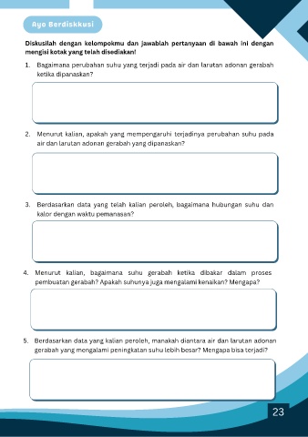 1. Bagaimana perubahan suhu yang terjadi pada air dan larutan adonan gerabah