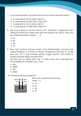 7. Acuan yang digunakan untuk titik tetap atas termometer fahrenheit adalah ....